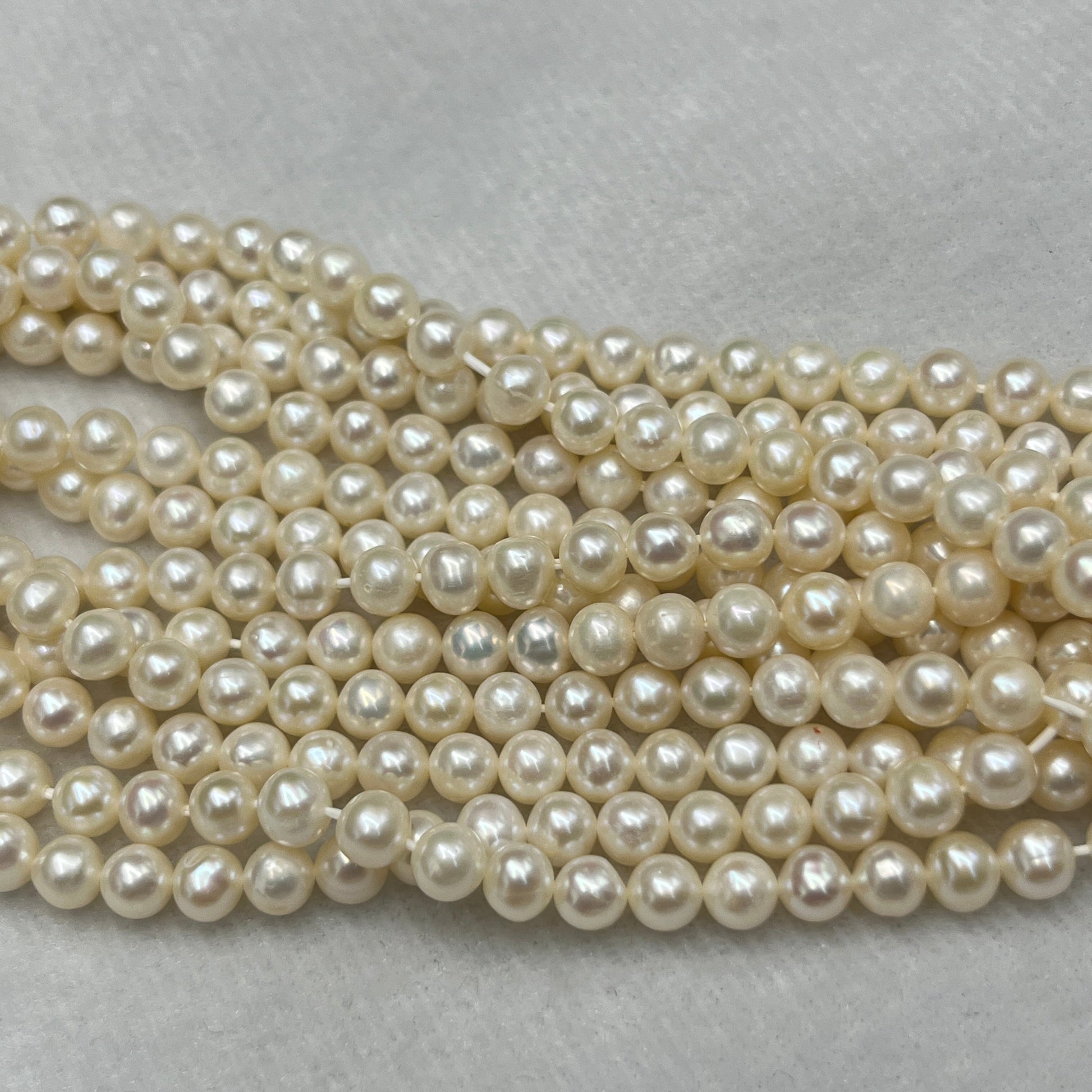 Fresh Water Pearl, Cream Color, Round Shape, 4 MM (Approx.) Size, AA Luster Pearl, 5.5 Inch each Length